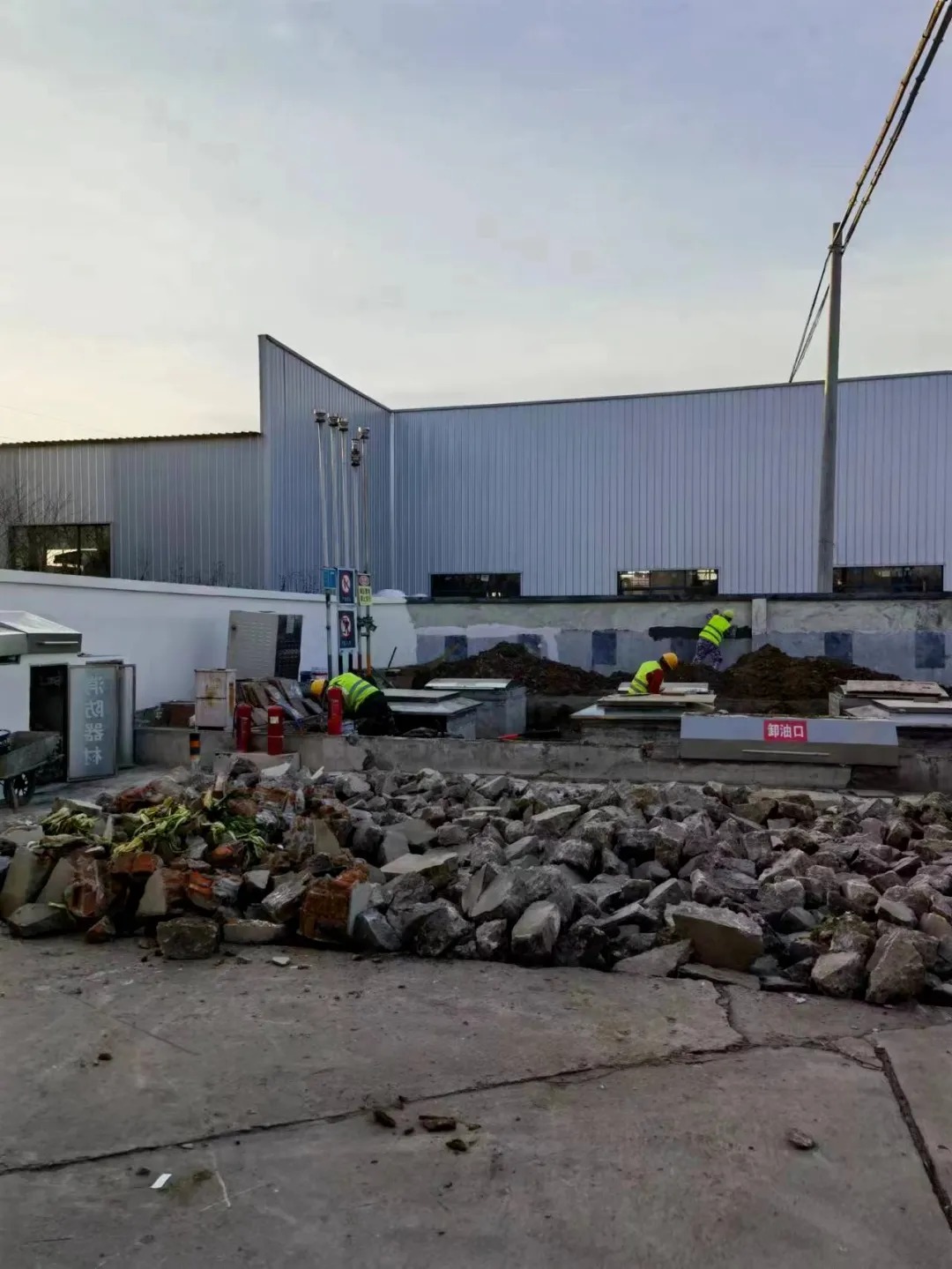 从基础的地面破除清理,到基层夯实、钢筋铺设,再到混凝土浇筑与防滑处理,施工团队对每一个步骤都做到精准把控。针对加油站地面需承受重型车辆碾压、耐油耐腐蚀的特性,我们选用高强度特种混凝土,配合专业的振捣与收光工艺,确保地面平整度与密实度达标。