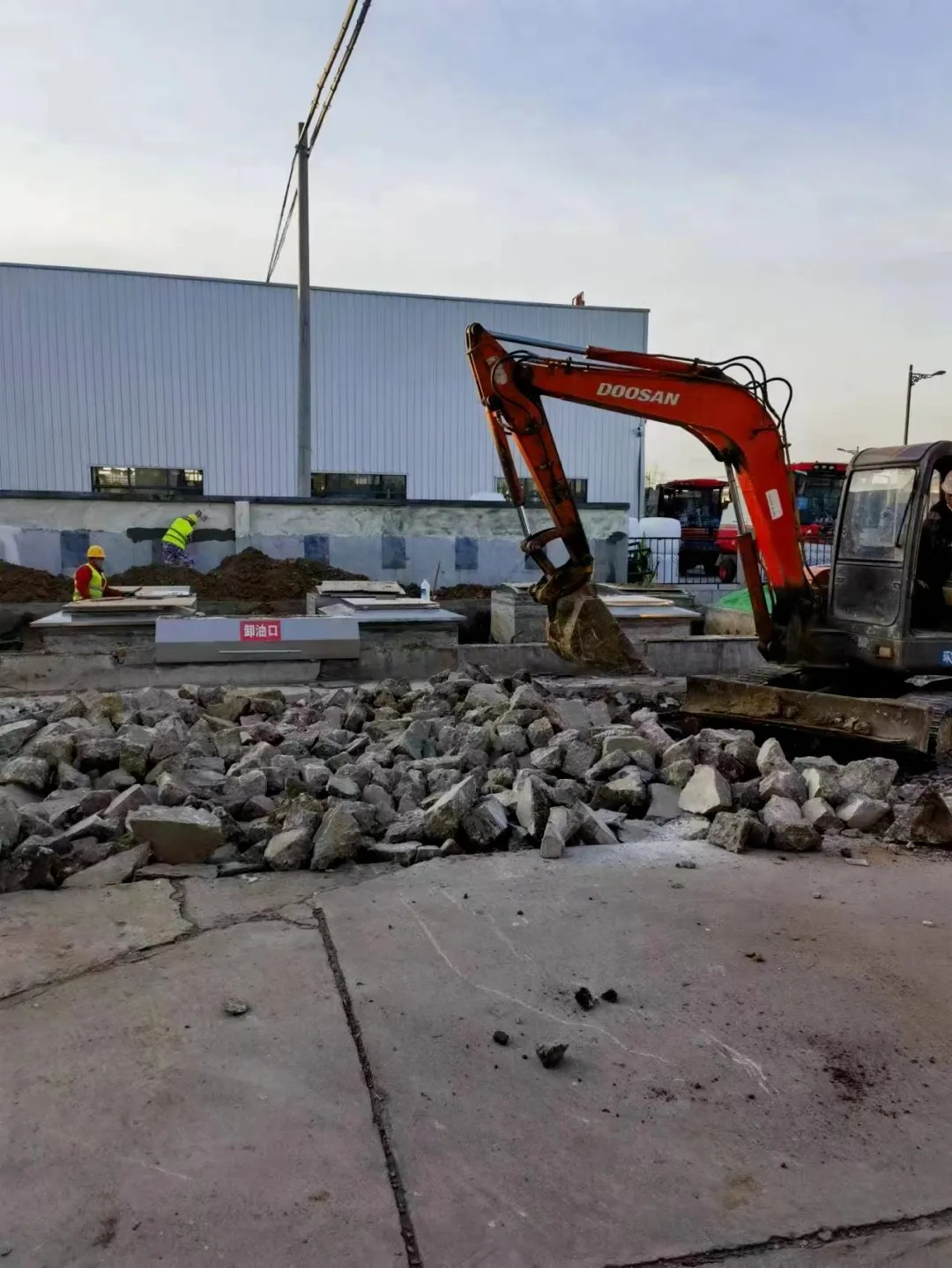 从基础的地面破除清理,到基层夯实、钢筋铺设,再到混凝土浇筑与防滑处理,施工团队对每一个步骤都做到精准把控。针对加油站地面需承受重型车辆碾压、耐油耐腐蚀的特性,我们选用高强度特种混凝土,配合专业的振捣与收光工艺,确保地面平整度与密实度达标。